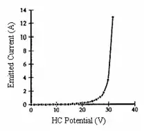 Once the electrons are thermionically emitted from the TC surface they require an acceleration potential to cross a gap, or in this case, the plasma sheath. Electrons can attain this necessary energy to escape the SCL of the plasma sheath if an accelerated grid, or electron gun, is used. The equation
