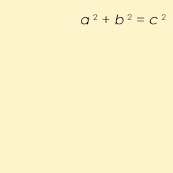 An equation states that two expressions are equal using the symbol for equality, = (the equals sign).[31] One of the best-known equations describes Pythagoras' law relating the length of the sides of a right angle triangle:[32]