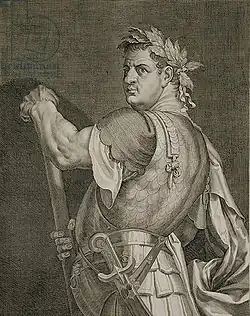 The Eleven Caesars was a series of eleven painted half-length portraits of Roman emperors made by Titian in 1536–1540 for Federico II, Duke of Mantua. They were among his best-known works, inspired by the Lives of the Caesars by Suetonius. Titian's paintings were originally housed in a new room inside the Palazzo Ducale di Mantova. Bernardino Campi added a twelfth portrait in 1562.