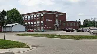 In 2006, the school began to remove asbestos from the walls and ceilings of the school, and added an elevator - luckily - apparently, the old part of the school was built on dirt, with no foundation beneath, so before the elevator was installed by Delta Elevators, a foundation was poured. The construction is finally over and the artworks are going back up on the walls. Another new piece of information is that the school has bought a piece of land across the street, formerly the Elmira Raceway, and now has a new sports field including a new track and field facility. There is also a large scoreboard at the new field.