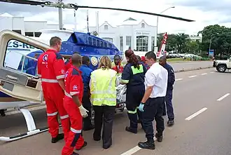 These publicly operated services are supplemented by multiple private-for-profit ambulance companies, NetCare 911[3] and ER24,[4] of which operate locally and nationally. The statutory services and private companies are further supplemented by voluntary ambulance services, including the South African Red Cross,[5] and St. John Ambulance.[6] All are required to meet the same standards as the public services with respect to staff qualifications. These services are self-dispatching and do not participate in the national emergency number scheme.