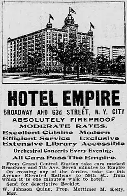 March 1902 advertisement for the first Hotel Empire that stood from 1889 to 1922