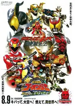 ![]() Film poster for both Engine Sentai Go-onger: Boom Boom! Bang Bang! GekijōBang!! and Kamen Rider Kiva: King of the Castle in the Demon World | |