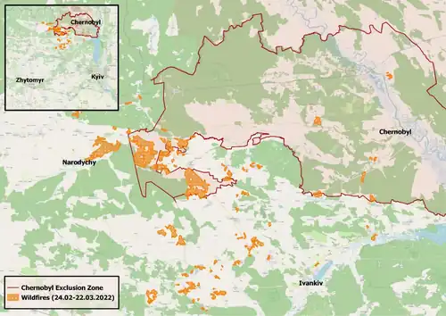 Fires in the forests around Chernobyl between 24 February and 22 March