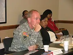 Equal opportunity issues are discussed at an army roundtable in Alabama.