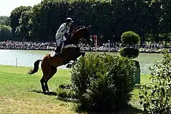 ![]() Collett and London 52 vault over the Le Jardin à la Française obstacle during the cross country run | |||||||||||||