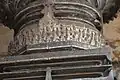 The architectural style of the temple is close to Ramappa temple and Kota Gullu, other Kakatiya era temples. The temple is placed on an upapitha and is cruciform in shape.[14][15] It has three porticos in the east, north and south and a garbhalaya in the west. The sikhara on the inner sanctum (garbhagudi) is made of brick and lime and is decorated all over by miniature turrets. It is said that the stone used in temple construction has interesting acoustic properties. When the temple stone is tapped with a coin, it sounds like metal.[15] The temple has intricately carved pillars and walls. The temple walls are painted with frescoes.