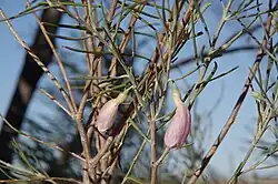 The Alyawarre people of the Utopia community regard this plant, which they call ilpengk to be a source of powerful medicines, which they use to treat respiratory complaints and skin complaints like scabies.[7] The medicine is prepared by collecting leaves which are then ground into a paste, mixed with fat, boiled, strained and decanted.[8]