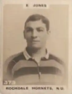 Ernest W. Jones (c. 1891 – death unknown) was an English professional rugby league footballer who played in the 1910s and 1920s. He played at representative level for Great Britain and England, and at club level for Rochdale Hornets, as a stand-off or scrum-half.[1]