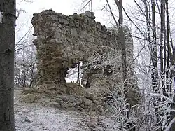 The number of Ernye's lands rapidly grew in Borsod County, his chosen centre of his activity. Sometimes in the period between 1247 and 1254, he acquired the castle of Dédes. The construction of the fort was originally started by the local castle warriors, but their money ran out. After financial difficulties, they sold the third of the land to the local powerful gens Miskolc. By 1254, Ernye owned the now fully finished castle.[37] File Miskolc, the provost of Zagreb, and his family sold their several lands in Borsod County in the same time, and moved their interests to Valkó County in Slavonia.[36] Following the Mongol invasion, only two castles were erected in Borsod County: Dédes Castle, owned by Ernye and Füzérkő Castle, which was owned by the Bishopric of Eger.[38] In 1254, Béla IV donated him the village of Mályi, which laid near Ernye's castle.[39] Before 1255, he also acquired Köves and Pétervására in Heves County.[40] When he served as ispán of Bács County in 1256, he owned an undetermined estate, which was bordering on Csörög.[36]
