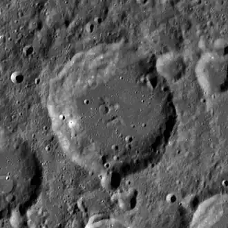 Esnault-Pelterie is a lunar impact crater on the far side of the Moon, named after French rocketry and astronautics pioneer Robert Esnault-Pelterie. It is located in the northern hemisphere, to the south of the crater Carnot. Esnault-Pelterie overlies the western side of the crater Schlesinger. To the south is the crater Von Zeipel and to the southwest is Fowler.