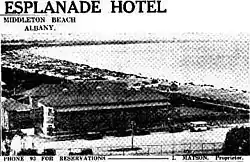 3. ^ Swain, Judith (September 2006). "The Esplanade Hotel, Middleton Beach, Albany" (PDF). Historic Albany. Historical Albany. Archived from the original (PDF) on 28 February 2015. Retrieved 26 August 2015.