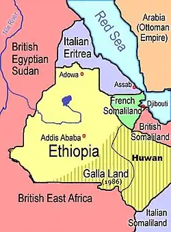 - ^ a b Marcus, Harold (1975). The Life and Times of Menelik II: Ethiopia 1844-1913. Oxford: Clarendon Press. p. 57.