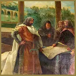 During this time, he received another commission for murals at the Círculo de Recreo de la Victoria (a private club) in Valladolid.[3] A few of these in the casino were apparently somewhat suggestive in nature and included a version of Leda and the swan with friars. This was in addition to more traditional Classical scenes executed at private residences. In 1907, the Diputación of his home town engaged him to create religious murals at the orphan's home and provincial hospice. In 1911, as a result of that work, he was commissioned to paint historical murals in the lobby of the Diputacion's governmental palace.[1] All but one of these were severely damaged by a fire in 1966.