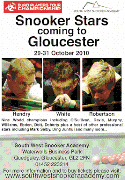 - ^ "EPTC Round 4 2010 The Results". South West Snooker Academy. 31 October 2010. Archived from the original on 25 March 2012. Retrieved 7 August 2011.