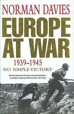 Europe at War 1939–1945: No Simple Victory is a history book about World War II in Europe, written by the English historian Norman Davies and first published by Macmillan in 2006. Published sixty years after World War II, Davies argues that a number of misconceptions about the war are still common and then sets out to address them. Two of his main claims are that, contrary to popular belief in the West, the dominant part of the conflict took place in Eastern Europe between the two totalitarian systems of the century - communism and fascism - and that Stalin's USSR was as bad as Hitler's Germany.[1] The subtitle No Simple Victory does therefore not just refer to the losses and suffering the Allies had to endure in order to defeat the enemy, but also the difficult moral choice the Western democracies had to make when allying themselves with one criminal regime in order to defeat another.[2]