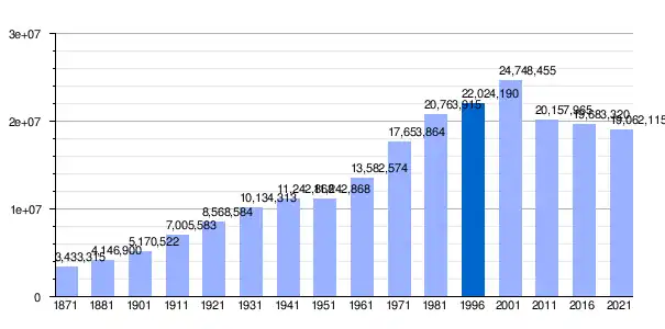 - ^ a b Government of Canada, Statistics Canada (June 4, 2019). "Data tables, 1996 Census Population by Ethnic Origin (188) and Sex (3), Showing Single and Multiple Responses (3), for Canada, Provinces, Territories and Census Metropolitan Areas, 1996 Census (20% Sample Data)". www12.statcan.gc.ca. Retrieved September 23, 2022.