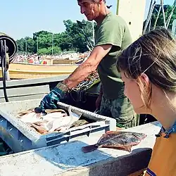 The European flounder is used for human consumption but is not so highly esteemed as the European plaice or common sole (Solea solea).[4] The most important fisheries are in the Baltic Sea and the waters around the Netherlands and Denmark. In 2010, the total world catch was about nineteen thousand tonnes, mostly caught by bottom trawling. The fish is marketed fresh and frozen and can be fried, boiled, steamed, baked or microwaved.[8]