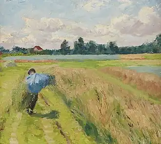 She became associated with the Konstnärsförbundets skola, and participated in many of their exhibitions. In the 1890s, she returned to France to visit her sister at the artists' colony in Grez-sur-Loing and would spend much of her life alternating between Stockholm and Paris.[3] Most of her paintings are landscapes or floral still-lifes, in an Impressionistic style. Many of her works are at the Nationalmuseum and the Sundvalls museum.