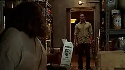 ![]() Hugo has a dream where he surprisingly sees Jin. Here you can also see Walt being plastered on the milk carton Hugo is holding in a missing poster | |