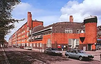 The term Brick Expressionism (German: Backsteinexpressionismus) describes a specific variant of expressionism that uses bricks, tiles or clinker bricks as the main visible building material. Buildings in the style were erected mostly in the 1920s. The style's regional centres were the larger cities of Northern Germany and the Ruhr area, but the Amsterdam School belongs to the same category.