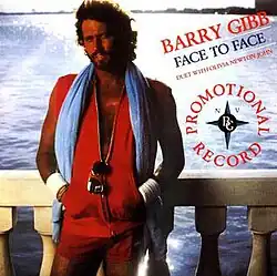 "Face to Face" is a ballad performed by Barry Gibb and Olivia Newton-John. It was released as a promotional single from Gibb's 1984 album Now Voyager in Brazil, Germany, Philippines and Spain. It was also included on Newton-John's compilation Love Songs (2004, Japan exclusive). Face to Face was also included in Olivia Newton-John's 3-Disc CD reissue of Physical-2021 Remastered Deluxe Edition.