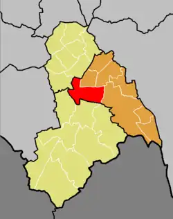 The former Fairfield ward (red) shown within Croydon Central constituency (orange) and the London Borough of Croydon (yellow)