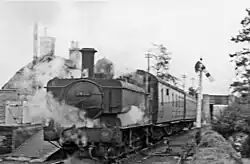 As Fairford had not been conceived as a terminus, its layout created a number of problems. The 246-foot (75 m) platform was inconveniently sited across the station throat which prevented the yard from being easily shunted if there was a train at the platform.[5] In the event, this defect did not need to be remedied as the station was never particularly busy;[5] receipts from 1903, 1913 and 1923 show that on average 6,500 tickets were issued whilst goods traffic handled never exceeded 10,000 tons and around 400 parcels were dispatched,[20] although there was at one time a substantial milk traffic with 15,000 gallons being sent daily to London.[21] In addition, there was insufficient space for the engine to run around the train for the return journey, meaning that the train had to be pulled forward to the goods loop where the engine was detached and positioned on the adjacent track to haul the coaches to the buffers using a cable until the points were cleared and the engine could regain its position.[11][22]