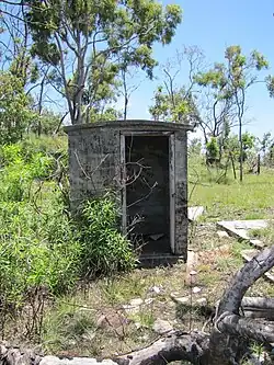 The Fantome Island facility did not last much longer. A six-bed isolation ward was built at the Palm Island Hospital by mid 1973, by which time there were three nuns, five patients and two ex patients still at Fantome. The patients were reportedly reluctant to move, as they feared a loss of freedom on Palm Island. However, the lazaret closed on 3 August 1973 and in mid August the complex was burnt by the Health Department.[85] In October 1973 the Bishop of Townsville reported that the former Catholic Church and some other buildings were still standing and were being used by visitors to the island, and requested that they be burnt by the Department of Aboriginal and Island Affairs; but vandalism had apparently achieved this aim by November 1973.[80] The two large Braithwaite steel water tanks were disassembled in 1974 and taken to Townsville.[1]