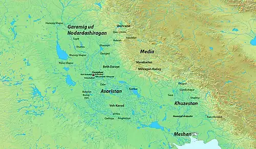 After the death of his brother, Farrukhzad succeeded him as the spahbed of Khorasan and Adurbadagan, and as the new leader of the Ispahbudhan family and the Pahlav faction. He then raised an army at Adurbadagan, and went to Ctesiphon, where he was appointed as its commander by Yazdegerd III, who fled to Hulwan with his property, family and 1,000 servants. Farrukhzad, however, also fled to Hulwan after a small and disheartening clash with the Arabs.[11] In 637, Ctesiphon was captured by the Arabs. Meanwhile, Farrukhzad, along with Yazdegerd III, the Mihranid officer Mihran Razi, Piruz Khosrow, and Hormuzan, left Hulwan for Adurbadagan, but while they were moving to the place, they were ambushed by an Arab army at Jalula, where they were defeated.[12] Mihran Razi was killed during the battle, while Hormuzan had fled to Khuzestan and Piruz Khosrow to Nahavand. In 642, the Arabs captured Nahavand and Spahan, killing Piruz Khosrow including other Sasanian officers such as Shahrvaraz Jadhuyih and Mardanshah. During the same year (or in 643), Farrukhzad raised another army with his son Isfandyadh and the Dailamite general Muta. They were, however, defeated at Waj Rudh, a village in Hamadan.[13] Meanwhile, Yazdegerd III fled to southern Iran and stayed there until 648. It is not known if Farrukhzad was with Yazdegerd III during his stay in southern Iran.[14]