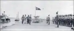 Both sides insisted on their right to Fashoda but agreed to wait for further instructions from home.[9] The two commanders behaved with restraint and even a certain humour. Kitchener toasted Marchand with whisky, the drinking of which the French officer described as "one of the greatest sacrifices I ever made for my country". Kitchener inspected a French garden commenting "Flowers at Fashoda. Oh these Frenchmen!" More seriously the British distributed French newspapers detailing the political chaos caused by the Dreyfus affair, warning that France was in no condition to provide serious support for Marchand and his party.[10] News of the meeting was relayed to Paris and London, where it inflamed the pride of both nations. Widespread popular outrage followed, each side accusing the other of naked expansionism and aggression. The crisis continued throughout September and October 1898. The Royal Navy drafted war orders and mobilized its reserves.[11]