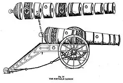 • A seventeen-barrel cannon fired with a matchlock.[5]
