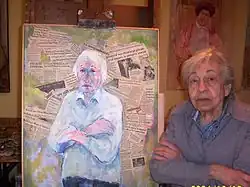 After her death, in August 2012, some of her paintings were displayed at Gallery 55+ in Ann Arbor and she was given a retrospective by the University of Michigan School of Art & Design.[4] More than 300 paintings were displayed in the latter, which chronicled Kleinman's career from the early 1930s through 2010, when she did her last full painting.[5][6] Local news site singled out her painting, The World Around Me, as the key work, saying it was painted with "a directness that’s a testimony to the aesthetic and social integrity that modernism sought to reflect."[7]