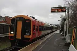 Off-peak, all services at Feniton are operated by South Western Railway using Class 158 and 159 DMUs.