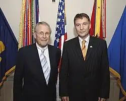 Juhász with U.S. Secretary of Defense Donald Rumsfeld in Washington, D.C., 6 October 2005