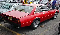 The carburetors on the 400 were replaced with Bosch K-Jetronic fuel injection in 1979.[9][10] As in the smaller 308GTBi and 308GTSi, power was down to 310 PS (228 kW; 306 hp), but emissions were much improved, complying with U.S. standards.[11] Top speed was 240 km/h (149 mph).[9] Initially differences between the 400 and 400 i were limited to the fuel injected engine and an "i" badge on the tail.