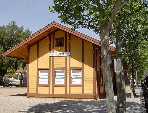 Fillmore station is a former train station in Fillmore, California. It was built by the Southern Pacific Railroad in 1887 as a stop along its Coast Line between Los Angeles and San Francisco.[1] It served as a nucleus for development, with the town of Fillmore growing around the site. Passenger service ended in 1935, though the building continued to be used for freight operations until 1974.[2]