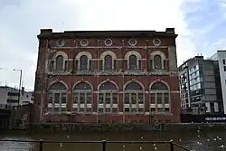 The generating station is at the eastern end of the site, next to St Philip's Bridge. It was built in 1899 for the Bristol Tramways and Carriage Company by the architect William Curtis Green.[7] The eventual demise of Bristol's tramways came on Good Friday 1941 during the Bristol Blitz, when bombs falling on St Philip's Bridge cut the power to the whole tramway system.[8] The generating station was subsequently converted into offices. It is a Grade II* listed building.[7]