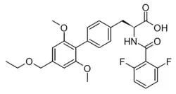 • CCOCC1=CC(=C(C(=C1)OC)C2=CC=C(C=C2)C[C@@H](C(=O)O)NC(=O)C3=C(C=CC=C3F)F)OC