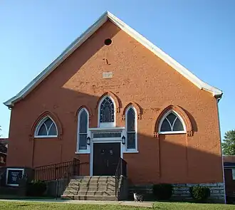 First African Baptist Church and Parsonage is an historically significant church building and an associated parsonage located in the United States on West Jefferson Avenue in Georgetown, Kentucky. In 1842, First Baptist Church moved from their West Jefferson location to a site closer to Georgetown College on College and Hamilton Streets. The church's previous building and property were leased to local black Baptists so a new congregation solely for blacks could be formed. The current building was constructed in 1870.[2][3] The buildings were added to the U.S. National Register of Historic Places in 1984.[1]