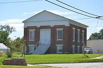 First Presbyterian Church is a historic Presbyterian church located at La Grange, Lewis County, Missouri. It was built in 1848, and is a one-story, temple front, Greek Revival style, red brick building on a raised basement. It has a gabled roof with an unadorned wood raked cornice and a pediment on the symmetrical façade.[2]