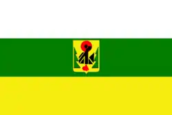 The flag of Khabarovsk Krai, in the Russian Federation, is a horizontal white and light blue bicolour charged with a green triangle at the hoist side in a similar fashion to the flag of the Czech Republic, albeit with different colors. It was adopted on 14 July 1994. The proportions are 2:3.[1][2]