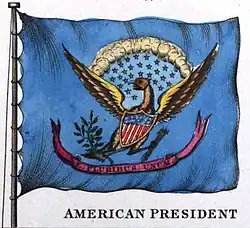 It is possible that distinctive flags were occasionally used to represent the president on individual occasions; there are claims that a special flag was used during a trip by President Jackson to New York City in 1832,[7][8] and a description of a "square, plain blue flag" used on a boat in the Brooklyn naval yard while transporting President Martin Van Buren on July 15, 1839.[9]