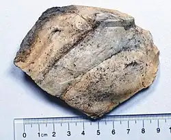 ![]() A sample of Miorcani flint from the Cenomanian chalky marl layer of the Moldavian Plateau (c. 7.5 cm (3.0 in) wide) | |