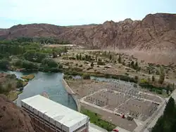 The Florentino Ameghino is located on the Chubut River, which originates from snowmelt in the Andes. Work began on the dam in 1943, led by the engineer Antonio Pronsato; the dam was inaugurated in 1963. The dam has two Francis turbines of 23.4 megawatts (31,400 hp) each. The dam is currently operated by Hidroeléctrica Ameghino.