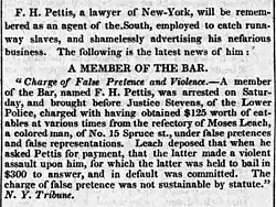 Pettis was known for "shamelessly advertising his nefarious business" and defaulted on $300 bail so was committed to jail (National Anti-Slavery Standard, July 15, 1841)