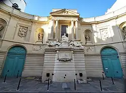 The Fontaine des Quatre-Saisons (French for 'Fountain of the Four Seasons') is a monumental 18th-century public fountain, at 57-59 rue de Grenelle in the 7th arrondissement of Paris, France. It was executed by Edme Bouchardon, royal sculptor of King Louis XV (ruled 1715–1774), and opened in 1745. The fountain is huge and richly decorated, but it had only two water spouts, and its grand scale on the narrow street, together with the lack of water, irritated Voltaire and other figures of the French Enlightenment.