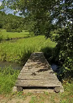 The simplest type of bridge is stepping stones, so this may have been one of the earliest types of footbridge. Neolithic people also built a form of a boardwalk across marshes, of which the Sweet Track, and the Post Track are examples from England, that are around 6000 years old.[2] Undoubtedly ancient peoples would also have used log bridges; that is a timber bridge[3] that fall naturally or are intentionally felled or placed across streams. Some of the first man-made bridges with significant span were probably intentionally felled trees.[4]