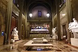 Commissioned expressly for the Memorial Court of Honor are the replicas of the seven Michelangelo sculptures including the Pietà. The Memorial Court of Honor is the only place in the world where exceptional marble reproductions of all of Michelangelo's most renowned statues can be viewed in one location. One of the mausoleum's last building phases incorporated French Gothic architecture with lofty ceilings and large stained-glass windows, creating an ethereal and tranquil space.