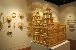 Moreno Reinoso makes large, ornate bird cages from the reeds and bamboo often in the forms of churches and houses, as well as boxes for paper, laundry baskets, book shelves and other light furniture.[1]
